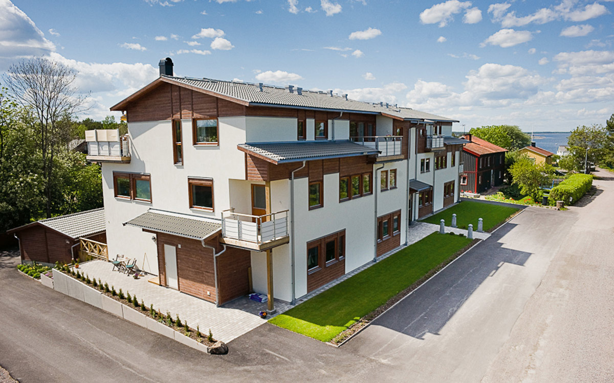 Ett flerbostadshus med 12 lägenheter på en attraktiv tomt i öregrund. Det var önskemålen från bostadsrättförening med höga krav på design och funktion.