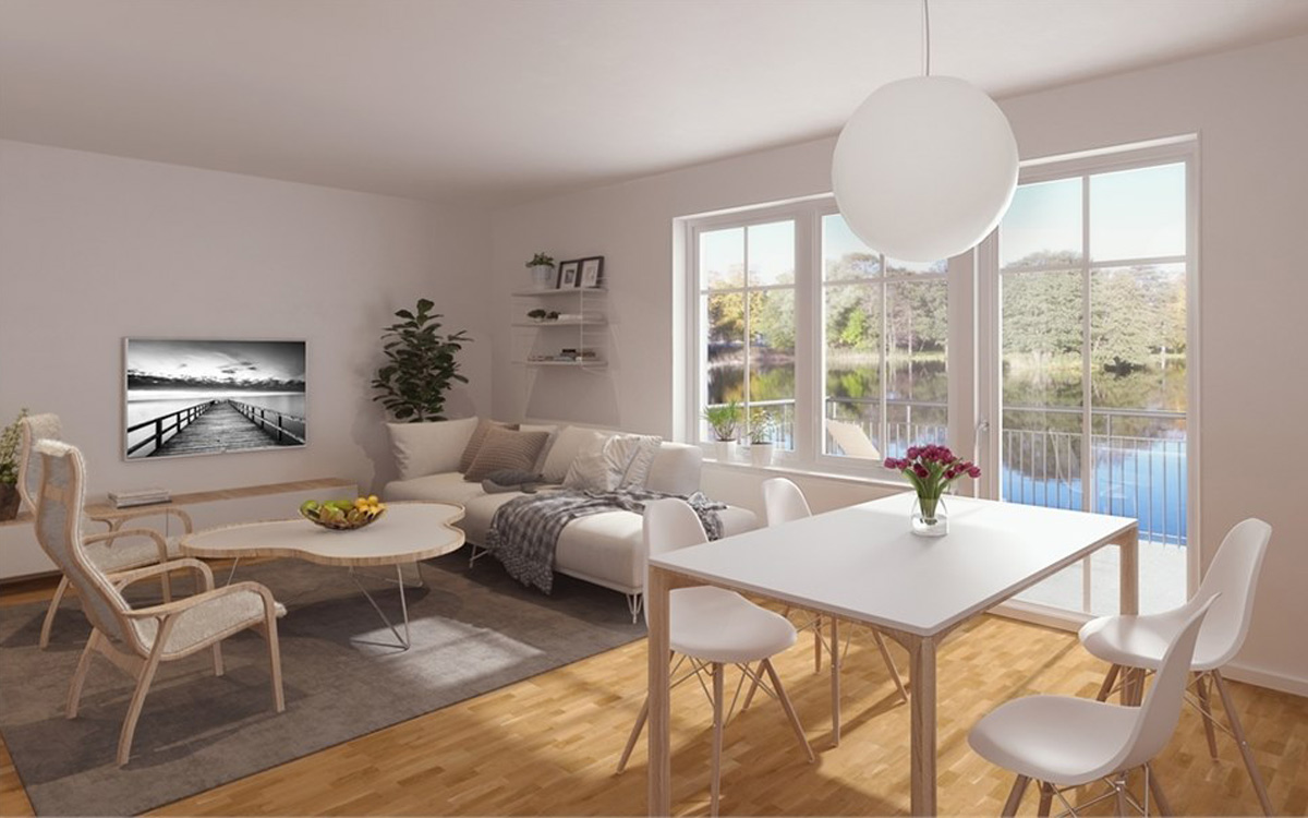 Bostäderna är tvåor och treor på 54-65 kvm med ljusa material val och modern inredning. Badrummen är helkaklade med egen tvättmaskin och torktumlare. Köken är ljusa och rymliga som ihop med vardagsrummet får en härlig utsikt över Svartån, med direkt anslutning till altanen/balkongen.